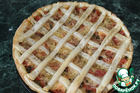 По желанию можно украсить сеточкой из теста, это я уже от себя решила приукрасить киш.