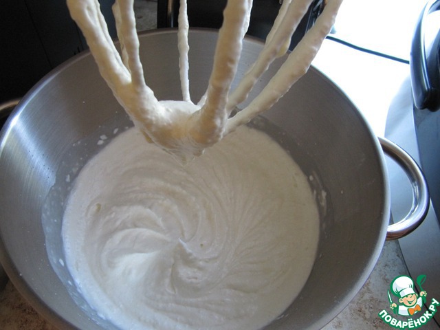 50 г подготовленного ранее пюре подогреть, растворить в нем отжатый желатин. Добавить оставшееся пюре. Размешать, остудить. Сливки взбить. Смешать с остывшим пюре, осторожно, но тщательно перемешать венчиком.