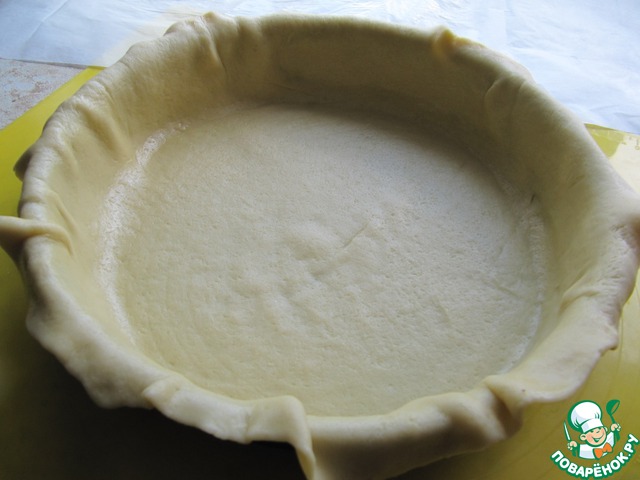 Пусть тесто само "осядет" в форме 1 минуту. Следите, чтобы не порвалось. Потом помочь ему руками: плотно прижать к стенкам. Если тесто нагрелось (скорее всего, так и будет) поставить в холодильник на 10-15 минут. Срезать кончики вровень с формой, рукой чуть-чуть отогнуть бортики и сгладить, чтобы края не были лохматыми. Прижать снова. Дно наколоть вилкой. Вот так будет выглядеть готовая к выпечке основа.