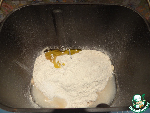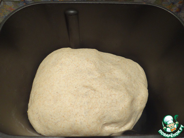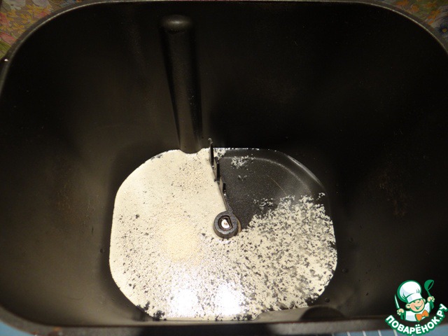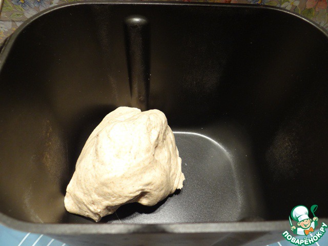 Помещаю ведерко в хлебопечку и включаю режим замеса теста.