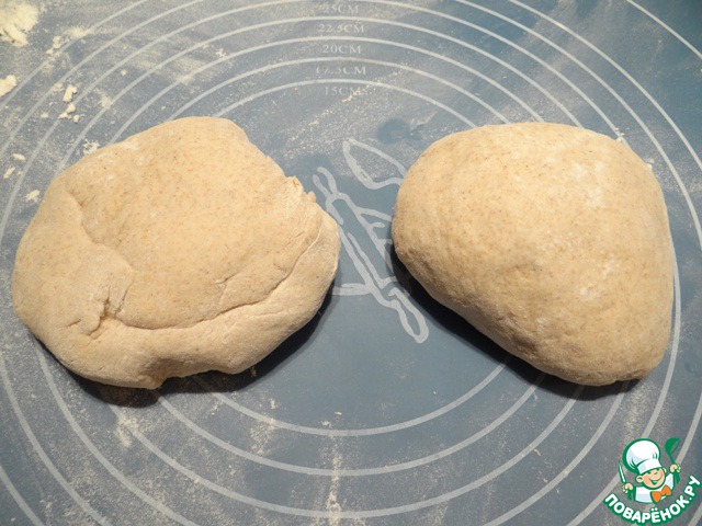 Используя муку для подпыла, раскатываю каждую часть теста в круг диаметром около 23-25 см.