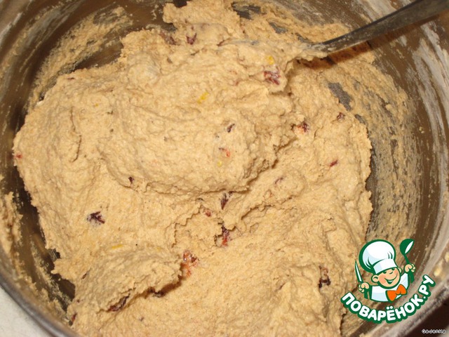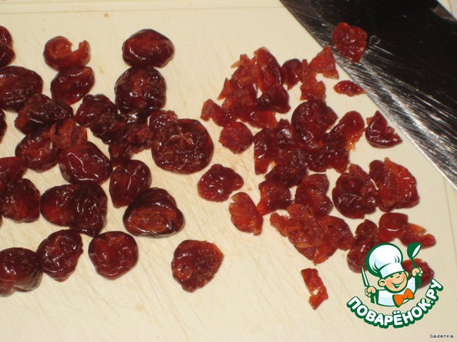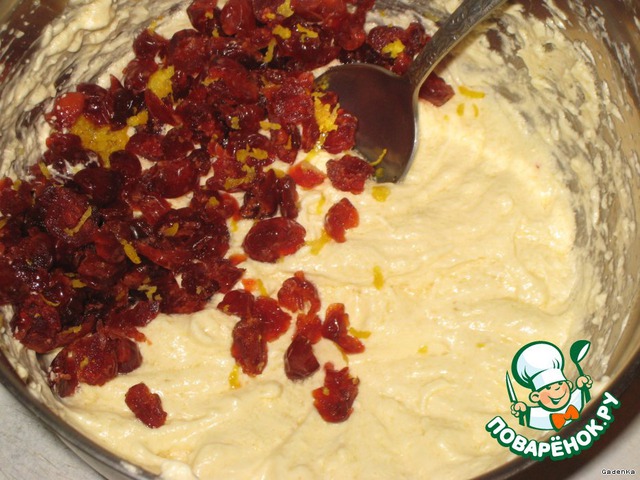 Добавить вяленую вишню, цедру. Перемешать ложкой.