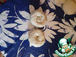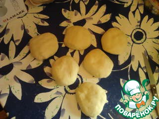 Замесить довольно крутое тесто из муки и воды, положить в пакет на расстойку на 20 мин., затем разделить на 3 части (у меня на фото двойная порция, поэтому кусочков 6)
