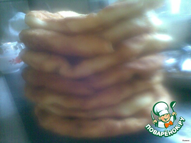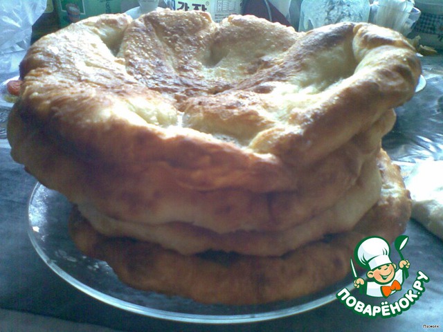 Тесто разделить на 7 частей и раскатать лепешки, толщиной 1 см.