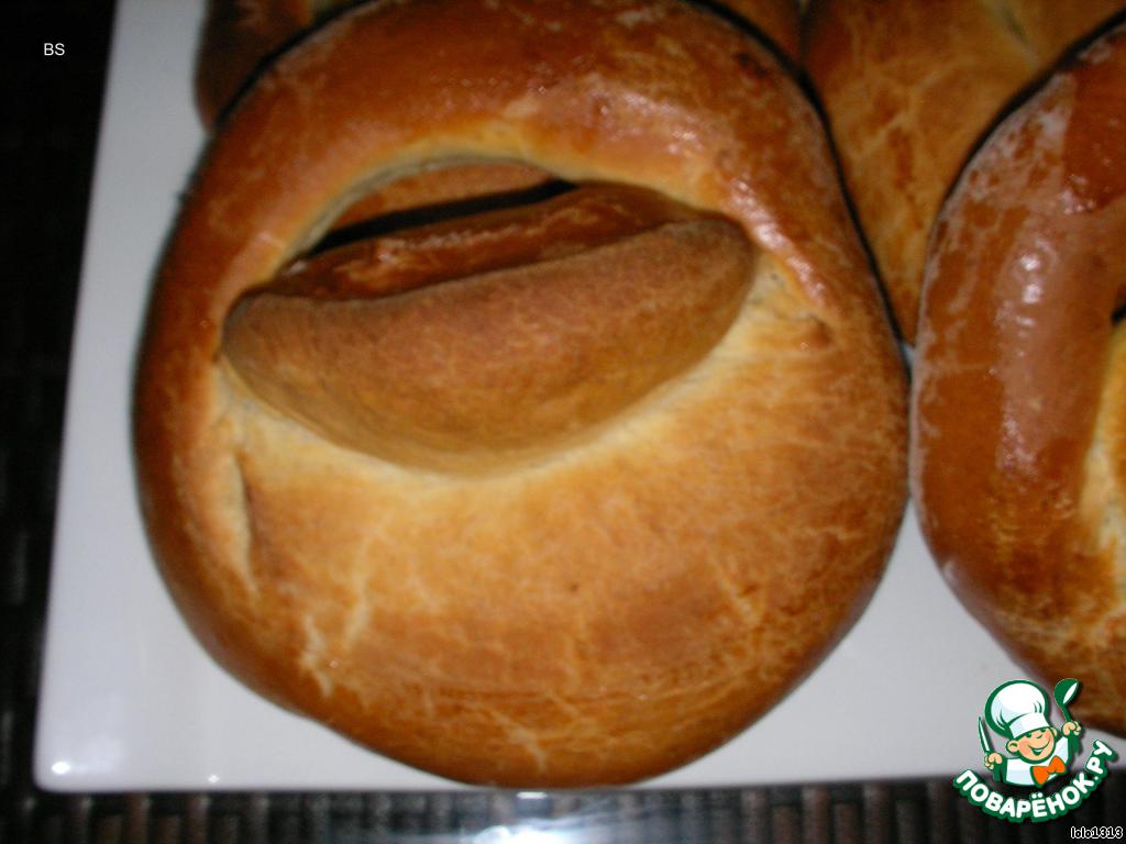 | Этот рецепт от Гастронома - скорее калач "Праздничный" из-за сдобных добавок. Настоящий калач делается из муки, воды, соли и дрожжей. Очень интерeсный, особенно его форма, белый хлеб был популярен в старые времена!!! |