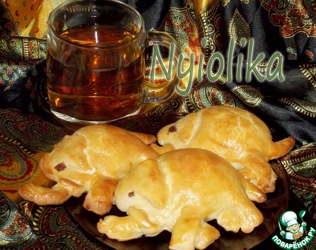 Выложить на противень, вставить кусочек шоколада в виде глазика и отправить в разогретую духовку (180 градусов). Выпекать минут 15, смазать яйцом и выпекать до готовности (еще минут 10)