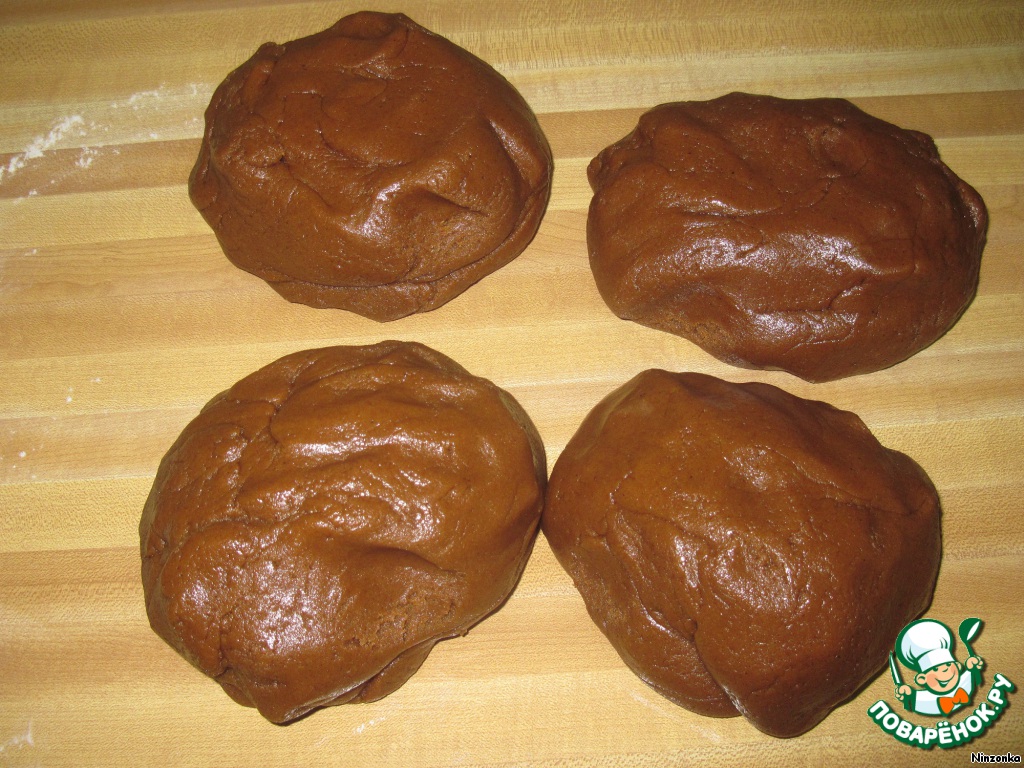 Получается вот такое тесто. Разделить его на 4 части. Это просто для удобства.