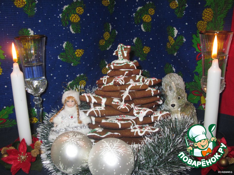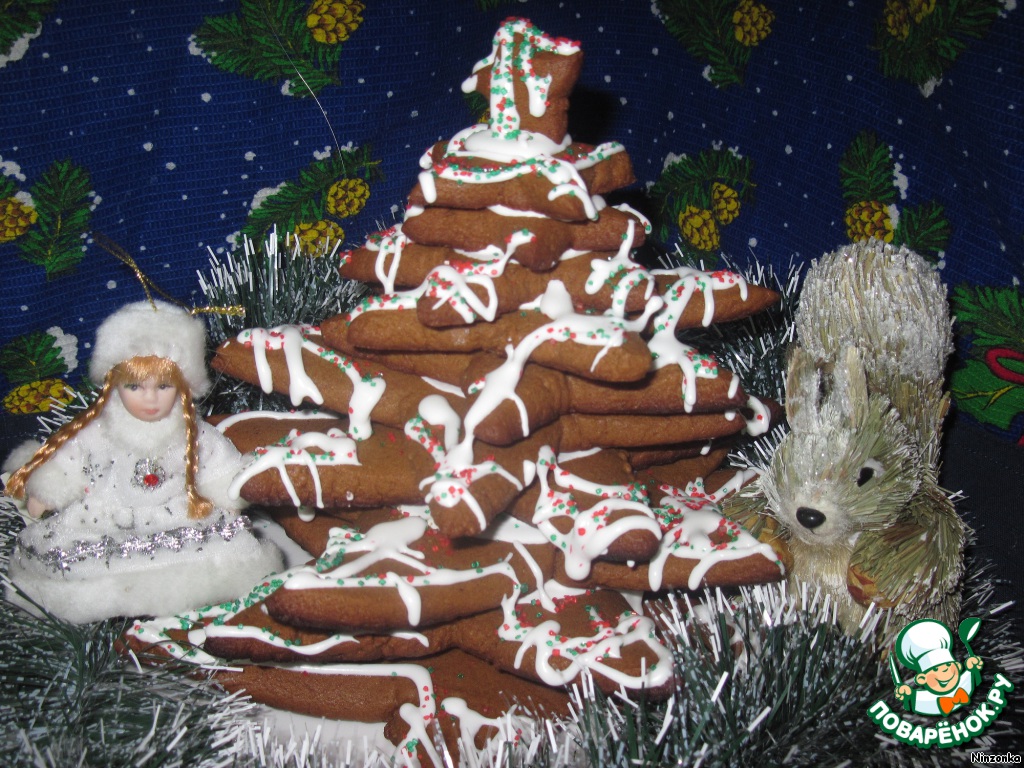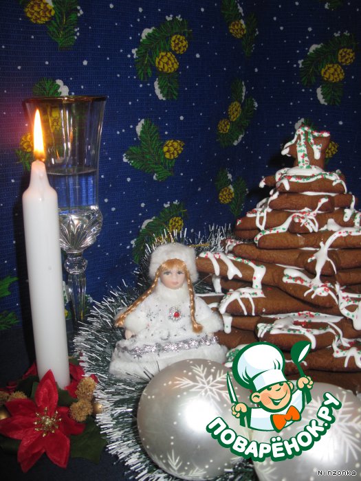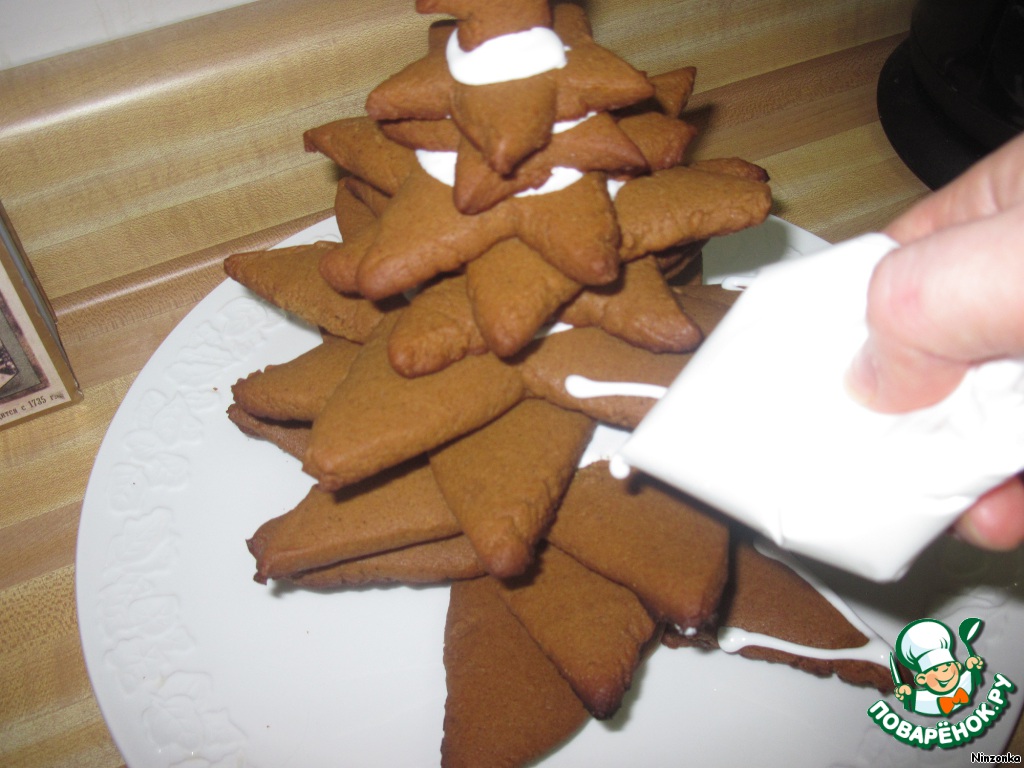 Потом оставшимся айсингом украшаем елку. Для этого я положила его в пакет, в котором сделала небольшую дырку.