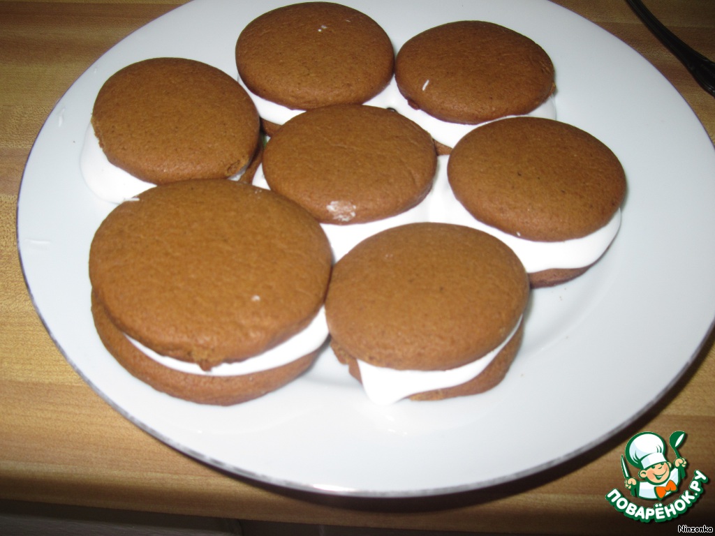 А из кругов делаем вот такое печенье-сандвич. Для этого одно печенье смазываем айсингом и накрываем другим. Даем застыть в течении 30 минут.
