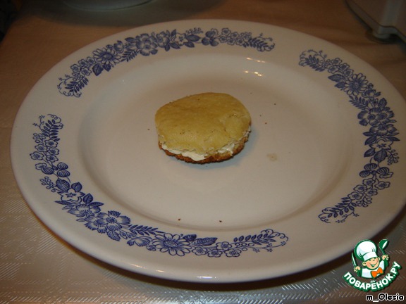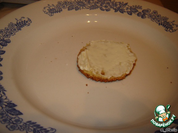 Смазываем один кружок (нижнюю часть от первоначального кружка) кремом.