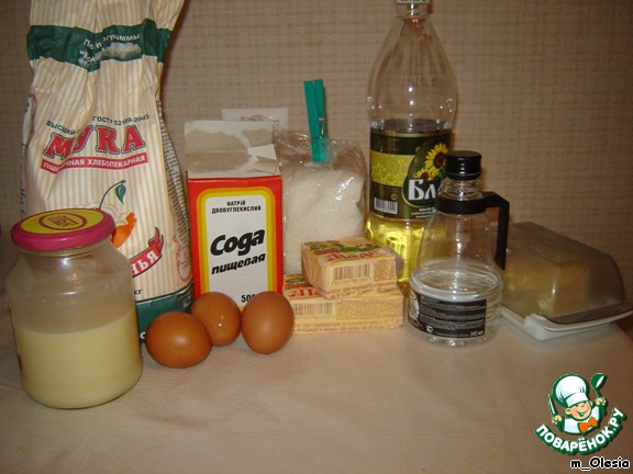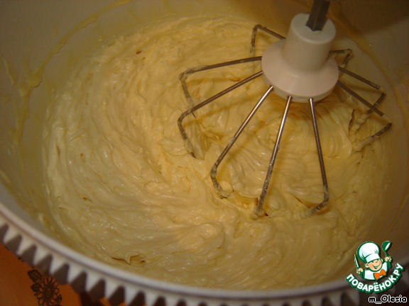 Пока выпекается вторая половина теста, готовим крем. Тщательно взбиваем размягченное сливочное масло, а потом постепенно добавляем к нему сгущенное молоко, не прекращая процесс взбивания. Количество сливочного масла и сгущенного молока можно варьировать от собственных предпочтений.