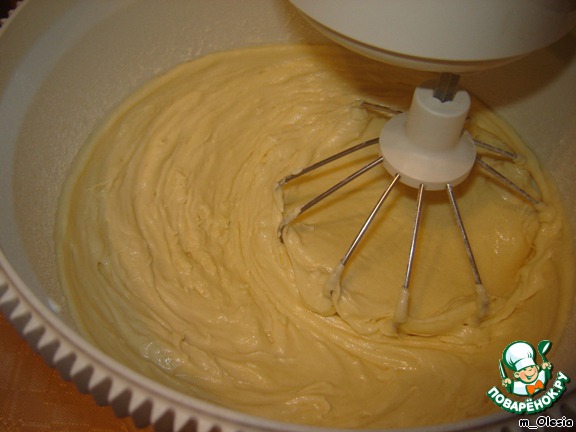 Постепенно добавляем в полученную массу 3 стакана муки и тщательно перемешиваем.