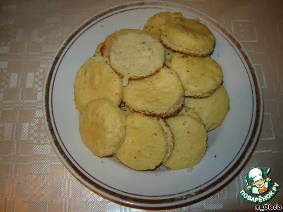 Выпекаем в заранее разогретой духовке до образования "розовой" корочки. Когда наша заготовка готова, достаем ее из духовки и сразу же стаканом вырезаем из теста кружочки.