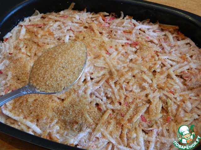 Посыпаем коричневым сахаром. Выпекаем при 180 С 30-40 минут.