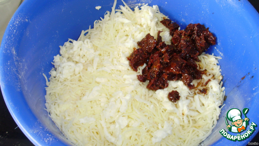 | Экперимент продолжался... Вот второй вариант сырных лепeшек с разными видами сыра и ещe одной "изюминкой". |