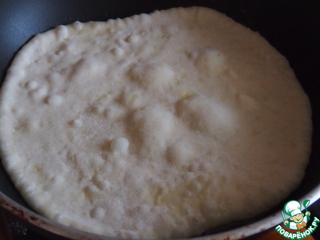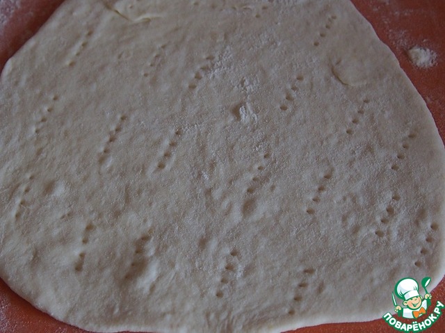 Потом раскатать лепешку размером с вашу сковороду, наколоть вилкой.