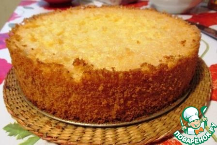 По истечение положенного времени открываем духовку и прямо через фольгу проверяем готовность коржа деревянной лучинкой. Если она выходит из коржа сухой, - готово. Вынимаем форму из духовки, снимаем фольгу. Охлаждаем корж в форме минут 15, вынимаем.