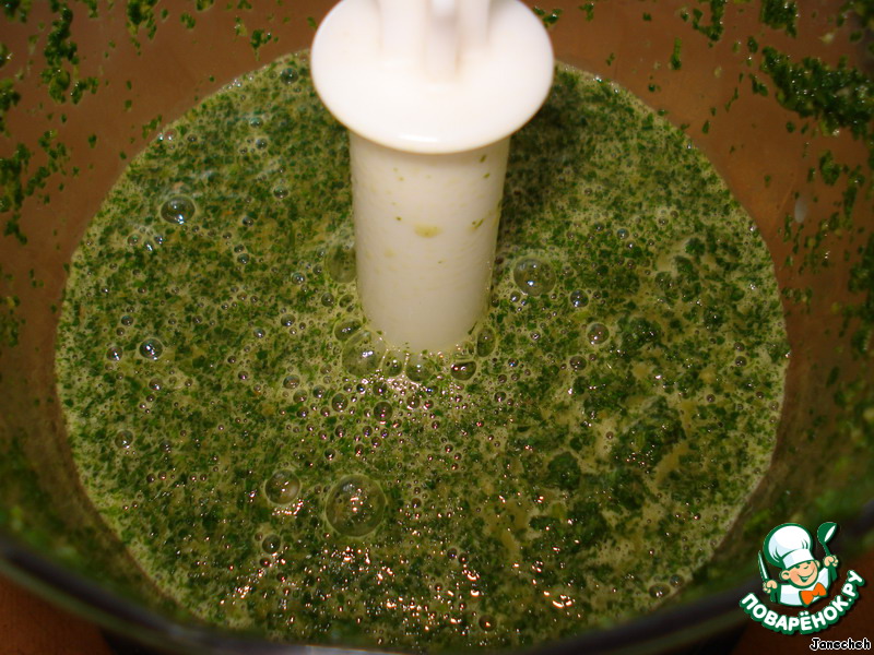 В блендер положила петрушку и чеснок, добавила сахар, растительное масло, соевый соус и воду.