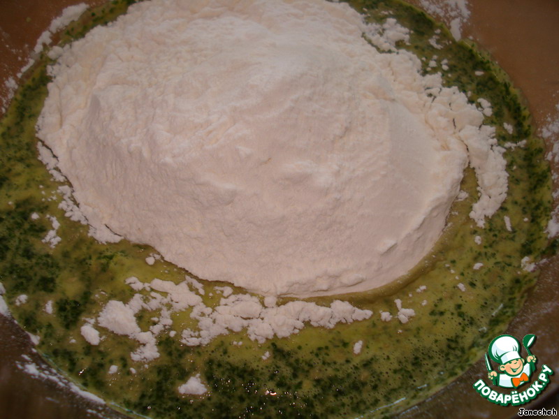 На стол высыпала остальную муку и выложила на неё мягкое тесто.
