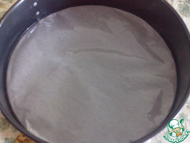 Форму (у меня d= 28см) застелить бумагой для выпекания, смазать маслом.