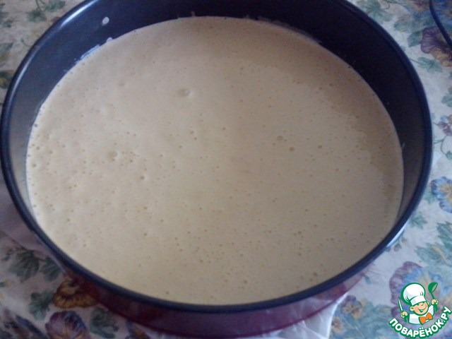Вылить бисквитное тесто в форму. Выпекать при t 175-180C, примерно 25-30 минут.