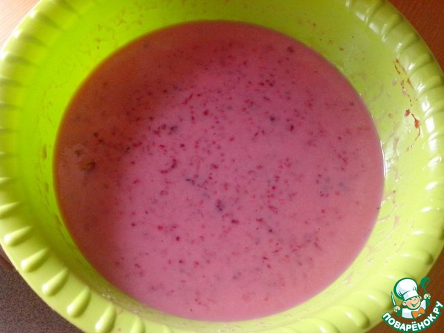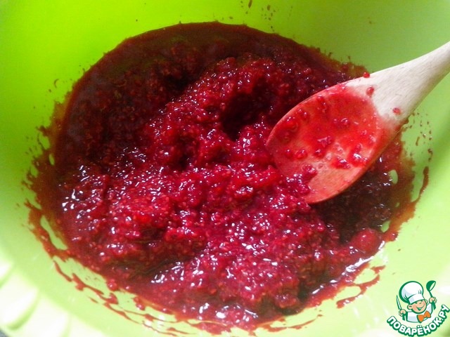 Готовим начинку. Из 450 г малины сделать пюре, а 100г положим в начинку позже.