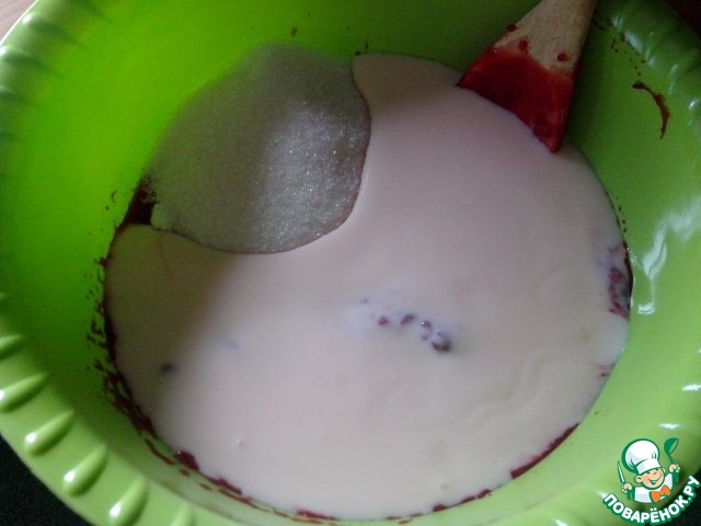 Добавить йогурт, сахар и выжать сок из лимона.
