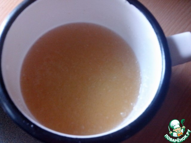 Желатин замочить на 10 минут в холодной воде. Затем на разогреть на слабом огне, постоянно помешивая.