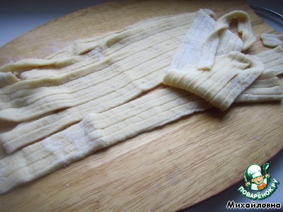 У меня лапшерезка, поэтому процесс нарезания лапши быстрый. Если лапшерезки нет, придётся повозиться. Лапшу нарезаем не очень тонкую.