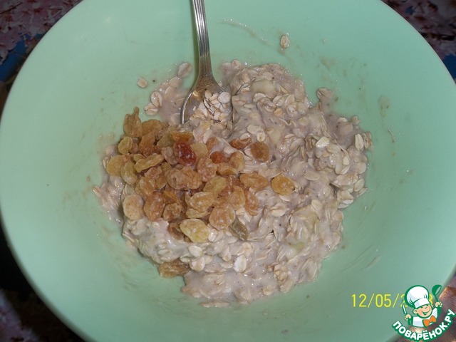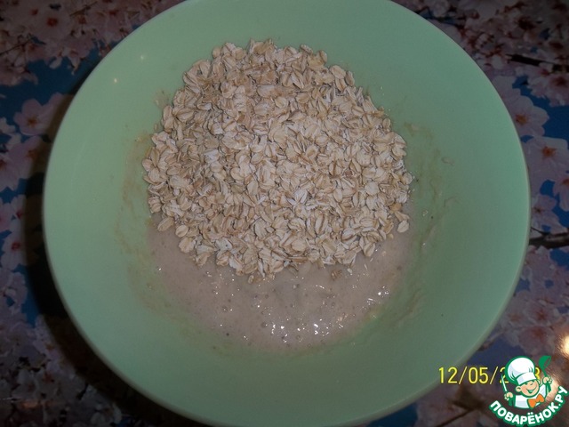 Добавляем овсяные хлопья. Перемешиваем.