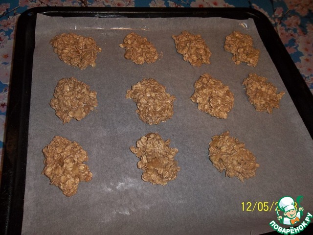 Выкладываем тесто столовой ложкой на противень застеленный пекарской бумагой. Выпекаем в разогретой до 190*С духовке, в течении 15 минут. Достаём и обязательно даём остыть. Затем аккуратно снимаем с бумаги.