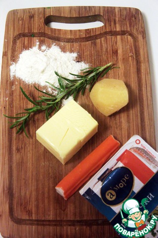 Для приготовления этой хрустящей закуски нам потребуются простые продукты - масло, мука, розмарин, крабовые палочки и вкуснейший итальянский сыр Пармезан.
