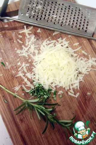 Розмарин желательно взять свежий, тогда аромат от печенья будет просто невероятным. Мелко порубите зелень, а также натрите на терке пармезан. Вместе с розмарином они составят идеальную пару :)
