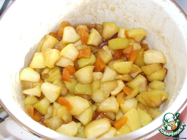 Взбить яйца с полученным тестом и перемешать с яблочной заготовкой.