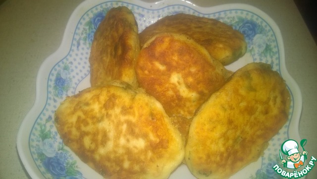 Смачиваем руки в простой воде, ложкой порцию теста выкладываем на ладонь. формируем пирожок. затем обваляем его в муке и отправляем на разогретую сковороду, предварительно смазанную растительным маслом.
