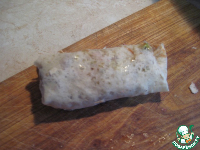 Заворачиваем блинчиком. На сковороде разогреваем масло и на сильном огне быстро поджариваем с двух сторон наши роллы.