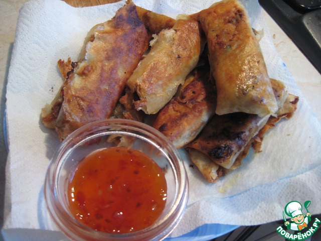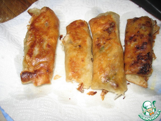 Поджаренные роллы выкладываем на салфетки, чтобы лишний жир ушел.