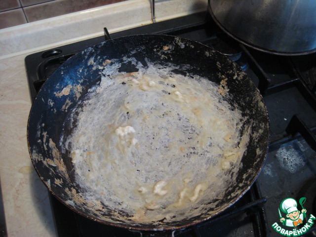 У меня получилось вот что... Тесто почти не оставалось на сковороде, прижариваясь к самому себе...