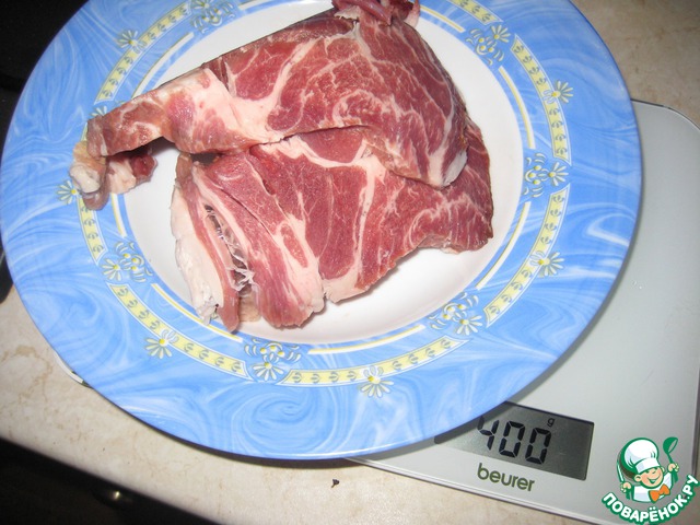 Мясо выбираем по своему вкусу, либо то, что есть в холодильнике. У меня это свининка. В оригинальном рецепте - куриные бедрышки.