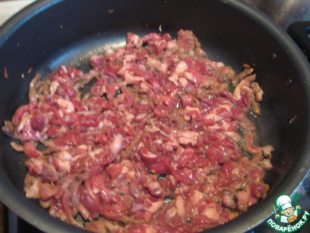 Нагреть в сковороде еще 2 ст. л. масла и на сильном огне обжарить мясо.