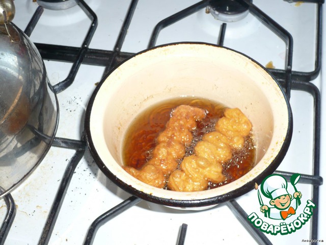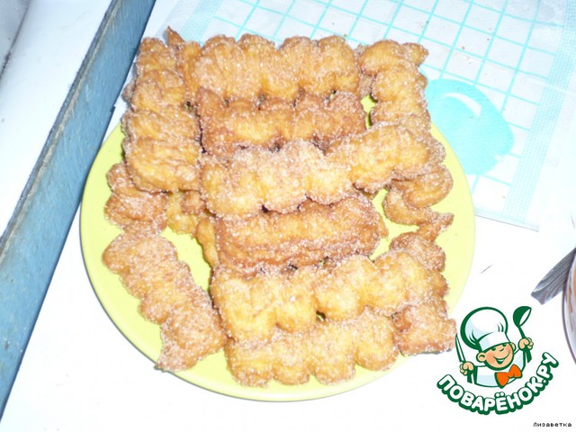 4 )Тестом вниз опускать за пергамент в масло чурросы, затем снимать пергамент и жарить как пончики.