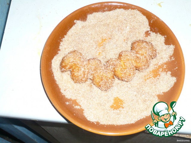 5 )Готовые чурросы выкладывать на салфетку и обваливать в смеси сахара и корицы.
