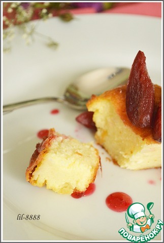 6. Духовку разогреть до 180С. Печь пудинги примерно 30 минут. Подавать с фруктами, у меня слива в сиропе, вареньем или джемом. Или просто так.