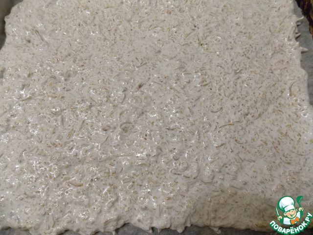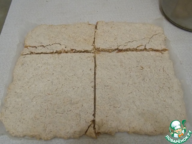 Противень застелить бумагой для выпечки и разровнять тесто в слой 2-3 см. Выпекать при t=160 25 - 30 мин. Слой должен быть твердый. Вынимаем и остужаем.