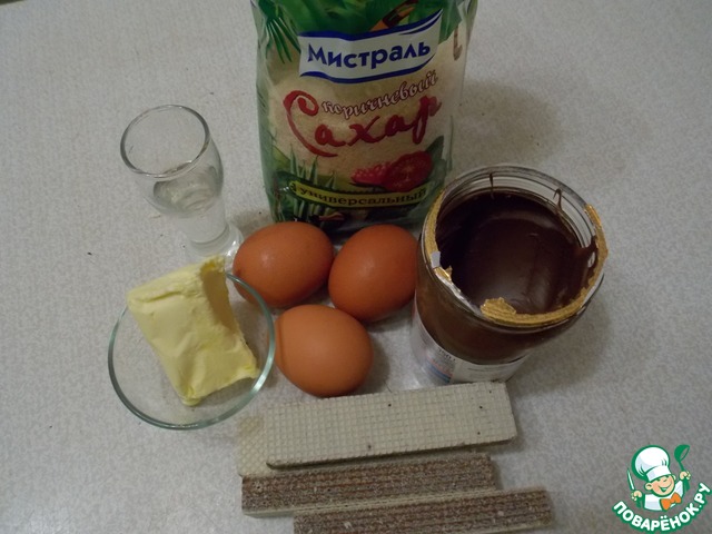 Вафли поломать и измельчить в некрупную крошку.