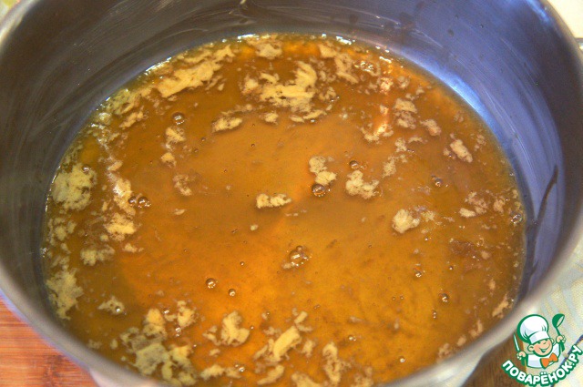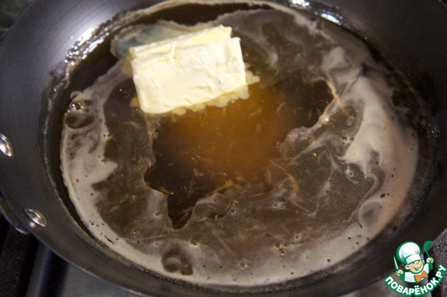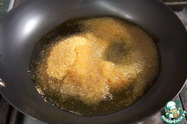 На сковороду насыпать оставшийся сахар и вылить воду. Сварить карамель.
