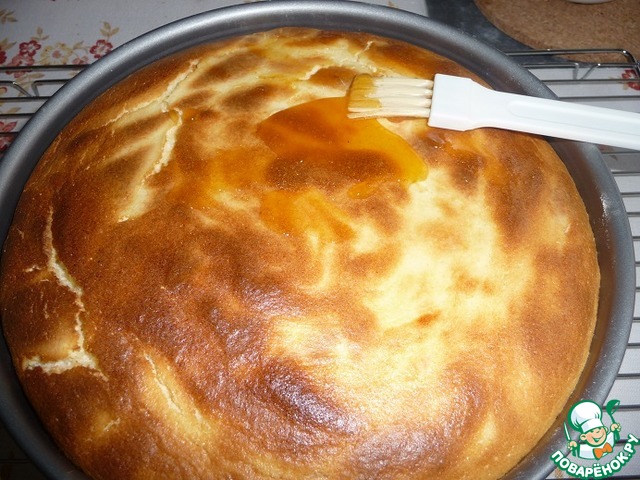 Чизкейк смазать джемом с помощью кисточки.
