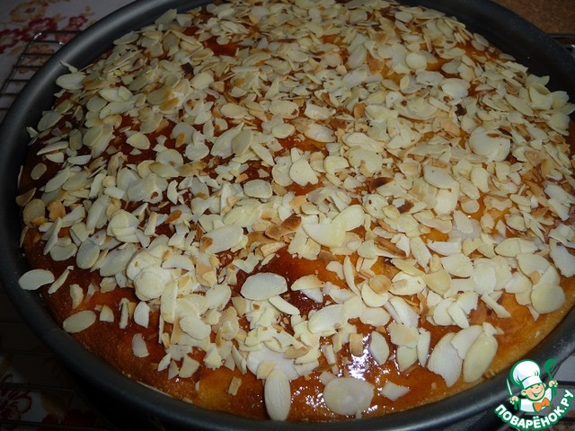 Сверху засыпать миндалем. Оставить в форме до полного остывания.