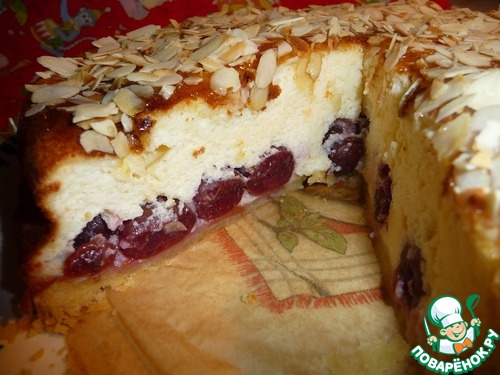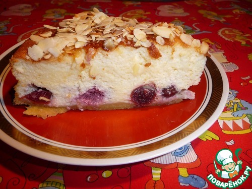 | Рикотта - Вишневый - Чизкейк с нежнейшим сливочным творогом на вишни, увенчанный деликатными миндальными лепестками. |