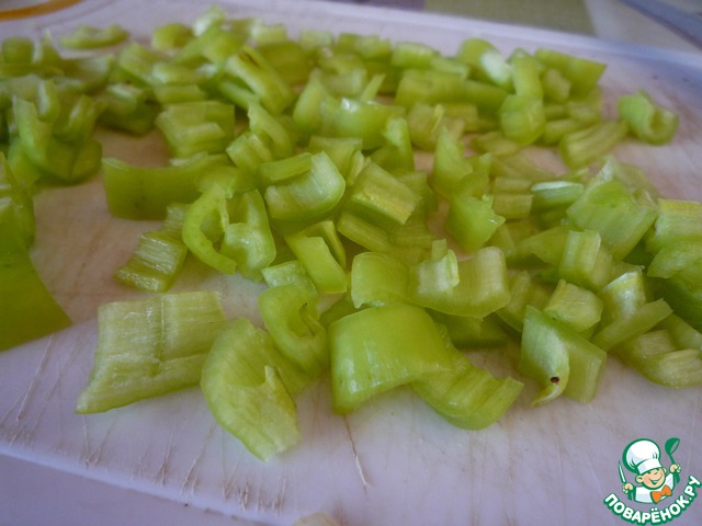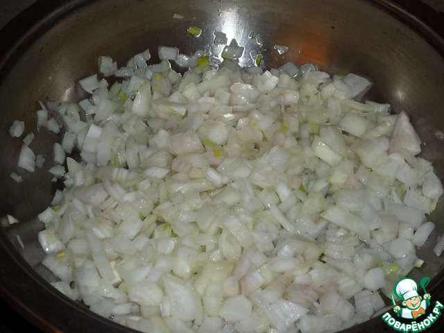 Также режем перец. Добавляем к луку. Хорошо перемешиваем.